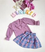 - سایز 5 : قد بلوز ۳۷، بین دو زیربغل ۳۲، قد استین۲۹، قد دامن ۲۷