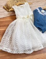پیراهن آستردار با تور دو لایه که تو تن پفی وایمیسه