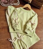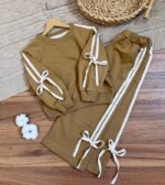 سایز ۵۵ : قد کراپ ۴۸، پهنا ۴۵، قد آستین از یقه ۶۰، قد شلوار ۸۰