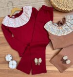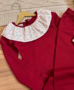 - سایز 3: عرض سینه 33، عرض سینه با کشسانی 44، قد بلوز 51، آستین از یقه 48، شلوار 74
