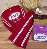 سایز ۵۵: قد دکورس ۵۵ سانتیمتر، بین دو زیر بغل ۵۲ سانتیمتر، قد آستین از کنار یقه ۵۶ سانتیمتر، قد شلوار ۸۱ سانتیمتر
