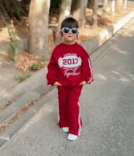 سایز ۴۵: قد دکورس ۴۵ سانتیمتر، بین دو زیر بغل ۴۶ سانتیمتر، قد آستین از کنار یقه ۴۹ سانتیمتر، قد شلوار ۶۱ سانتیمتر