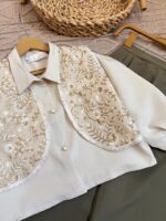 سایز۵…قد شومیز۵۱…بین دو زیربغل۳۶…قد استین۴۹…قد جلیقه۳۸…قد شلوار۸۰