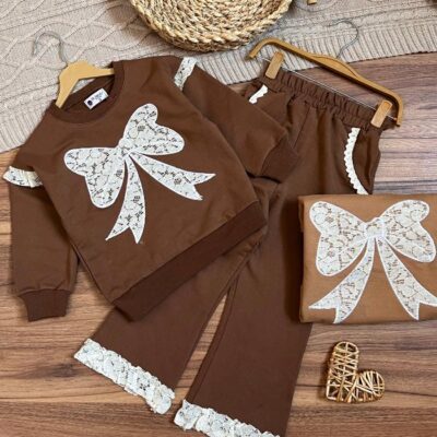 پیراهن دامن دوچین پاپیون پولکی یاسی در سه سایز